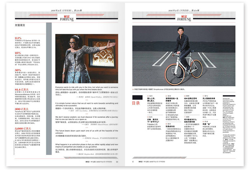 《財(cái)富》創(chuàng)辦于1930年,雙月刊,單期184頁,《財(cái)富》雜志主要刊登經(jīng)濟(jì)問題研究文章的雜志,雜志是國有和外資企業(yè)管理人員,金融和貿(mào)易的專業(yè)人員,各級政府官員的刊物。