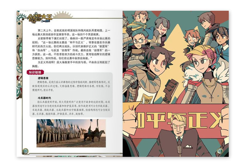 《創(chuàng)想大王》月刊,單期52頁,《創(chuàng)想大王》雜志以明溪小學科學社的4位成員參加“創(chuàng)想大王”比賽為背景,將科學知識、融入到充滿懸念的闖關(guān)游戲故事中。