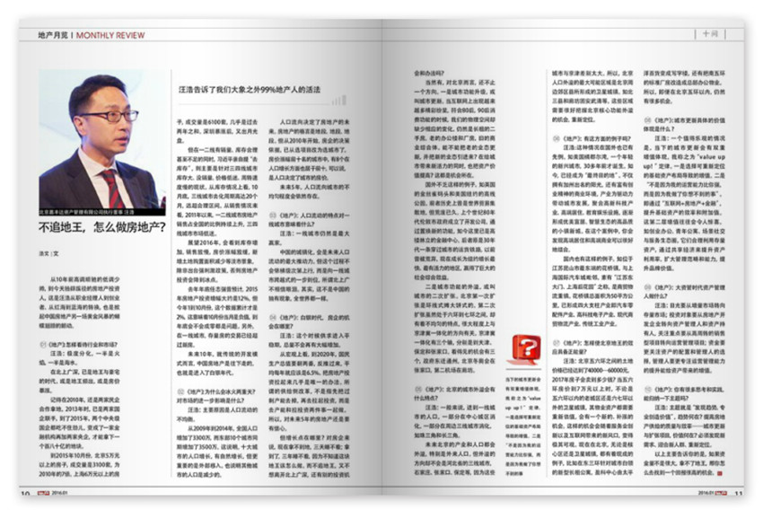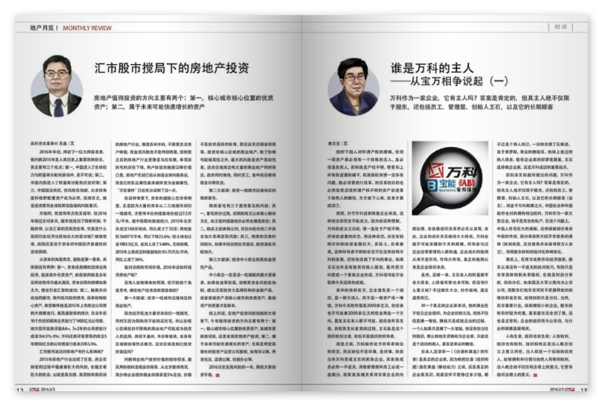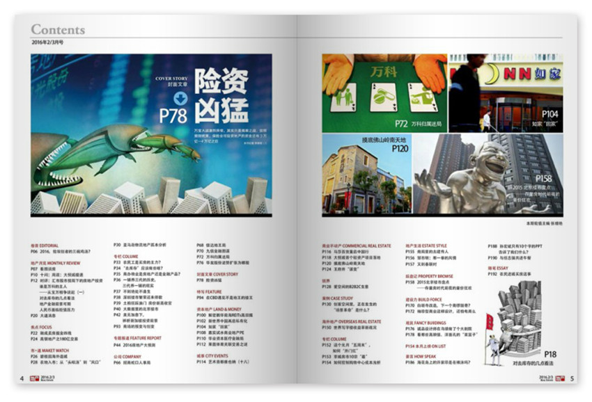 《地產(chǎn)》主要欄目:卷首、地產(chǎn)月覽、焦點報道、區(qū)域市場、公司、封面專題等。