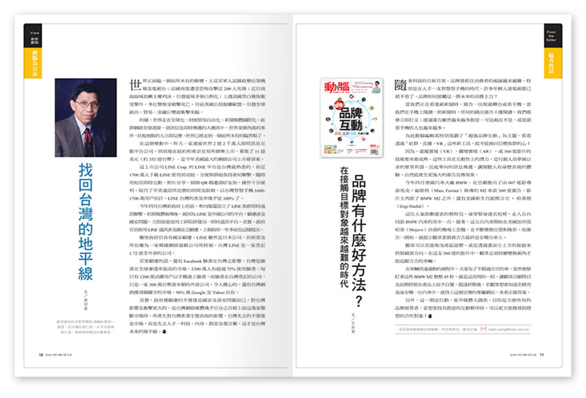 《動腦》雜志每月定期提供最熱門的全球產(chǎn)業(yè)趨勢、專題報道、全球設計、行銷風向球、流行快報、網(wǎng)絡公關案例、業(yè)界動態(tài)、及創(chuàng)意藍海專欄,是行銷傳播人不可或缺的產(chǎn)業(yè)交流資訊平臺。
