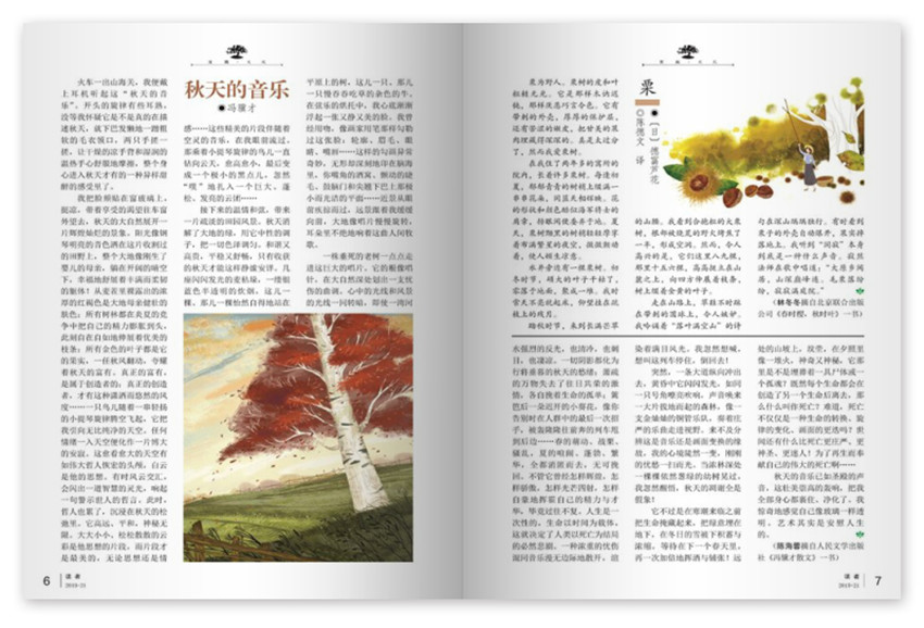 《讀者》創(chuàng)辦于1981年,半月刊,單期84頁,《讀者》是中國具有廣泛社會影響力的著名文化綜合類期刊,封面設計精美,排版簡約大方,內(nèi)容傳遞出濃濃的人文關(guān)懷,深受國人喜愛。