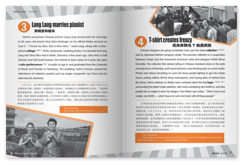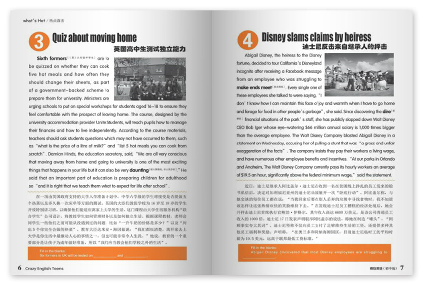 《瘋狂英語(yǔ)初中版》主要欄目:熱點(diǎn)直擊、口試演習(xí)場(chǎng)、快樂(lè)學(xué)堂、學(xué)有其法等。