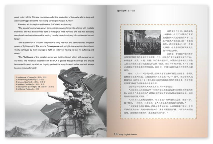 《瘋狂英語(yǔ)》,創(chuàng)刊于1980年,期望通過(guò)自身在傳播領(lǐng)域的資源優(yōu)勢(shì),給我們帶來(lái)高品質(zhì)生活,紙張開(kāi)本:16開(kāi),國(guó)內(nèi)刊號(hào):CN:36-1292/H。為了在英語(yǔ)教學(xué)中弘揚(yáng)深入鉆研、積極改革、不斷創(chuàng)新的精神,為全國(guó)英語(yǔ)教師搭建一個(gè)相互交流和展示其在各自的教學(xué)實(shí)踐、研究領(lǐng)域中所取得的寶貴經(jīng)驗(yàn)和豐碩成果的平臺(tái),大力促進(jìn)中國(guó)基礎(chǔ)英語(yǔ)教育的發(fā)展。
