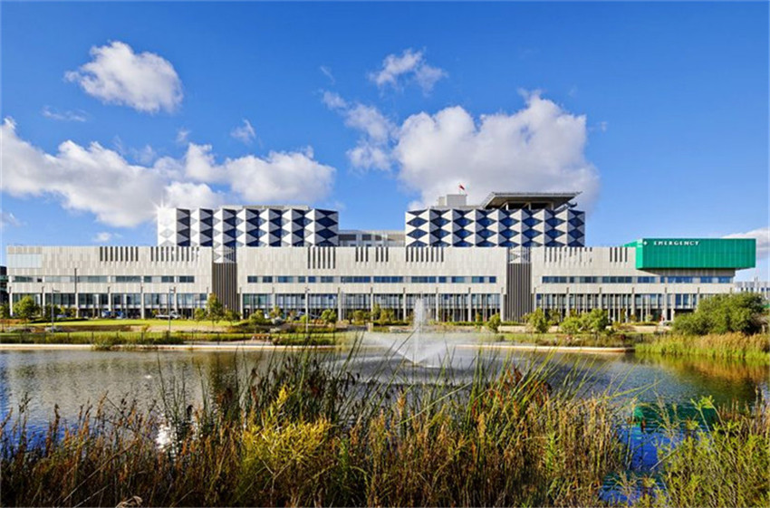 初入雍和府,映入眼簾的便是精挑細(xì)選的“巖石”、獨(dú)具匠心的打磨拼接、閃著光卻又暗藏“千山”的金屬飾條,千山流水似瀑布,水面倒影,波光粼粼,如入山水間,此為迎賓。走進(jìn)去,只見(jiàn)設(shè)計(jì)師筆下簡(jiǎn)潔有力的線條化作眼前約30米長(zhǎng)而無(wú)一根立柱的風(fēng)雨連廊,遠(yuǎn)遠(yuǎn)望去,輕薄如云,懸浮在水面之上,不僅規(guī)避了東南角施工塔吊帶來(lái)的視覺(jué)破壞問(wèn)題,也創(chuàng)造了靜謐的空間。