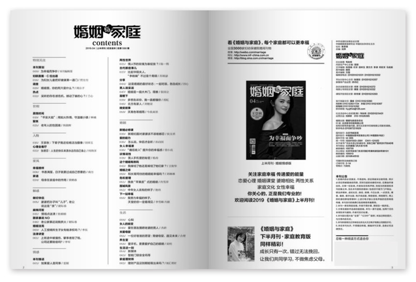 《婚姻與家庭》創(chuàng)辦于1985年,半月刊,單期80頁(yè),《婚姻與家庭》雜志以深刻而富有哲理的思想、貼心而具有人文關(guān)懷的情操、樸實(shí)而打動(dòng)人心的深情、清新而求真的文風(fēng)吸引了百萬(wàn)讀者。