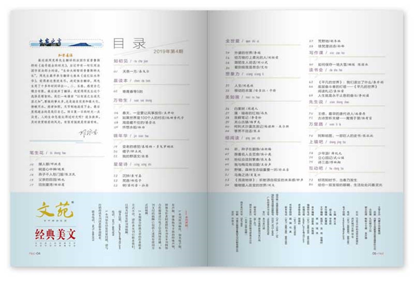 《文苑·經(jīng)典美文》主要欄目:真、趣、人、美、風雅頌、詩禮樂、經(jīng)典主題、閱讀留言。