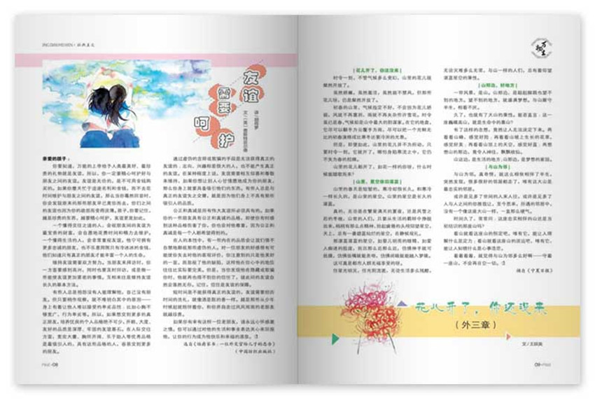 《經(jīng)典美文》創(chuàng)辦于2005年,月刊,單期96頁,《文苑·經(jīng)典美文》雜志秉承“文字感動生活”的編輯理念,發(fā)揚“誠懇、自然、質(zhì)樸、親切”的編輯風格,薈萃中外美文經(jīng)典,輯錄現(xiàn)當代時文,與讀者共鳴經(jīng)典、分享精品、同述感動。