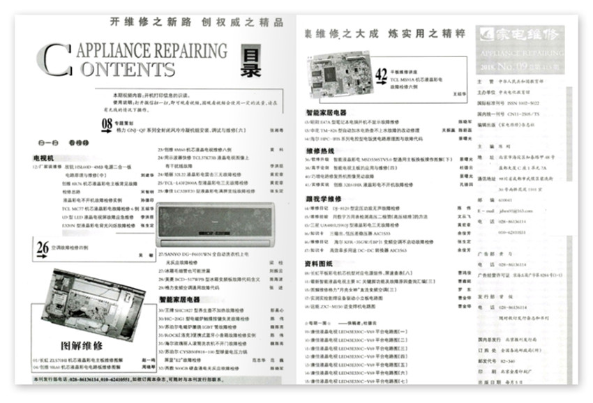 《家電維修》創(chuàng)辦于1988年,月刊,單期67頁(yè),《家電維修》雜志是國(guó)內(nèi)首家家電維修專業(yè)雜志,內(nèi)容豐富,涉及面廣,文章具有極強(qiáng)的可讀性、實(shí)用性,提供的大量資料,極具收藏價(jià)值。