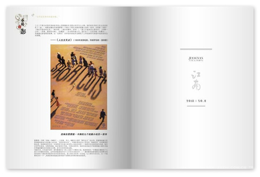 《江南》,創(chuàng)刊于1980年,期望通過(guò)自身在傳播領(lǐng)域的資源優(yōu)勢(shì),給我們帶來(lái)高品質(zhì)生活,紙張開(kāi)本:大16開(kāi),國(guó)內(nèi)刊號(hào):CN:33-1034/I。