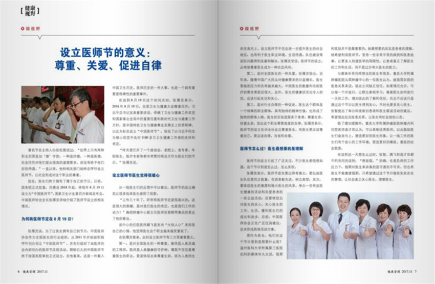 設(shè)立醫(yī)師節(jié)的意義:尊重、關(guān)愛、促進(jìn)自律。著名節(jié)目主持人白巖松曾說過:“世界上只有兩種職業(yè)后面是加‘德’字的,一種是師德,一種是醫(yī)德,社會往往對他們提出很高的道德要求,卻沒有給予他們好的待遇。”一直以來,他和相關(guān)部門始終在呼吁設(shè)立醫(yī)師節(jié),讓社會形成對這個職業(yè)的尊重。現(xiàn)在,醫(yī)生們終于擁有了屬于自己的節(jié)日。日前,國務(wù)院正式批復(fù),同意自2018年起,將每年8月19日設(shè)立為“中國醫(yī)師節(jié)”,國家衛(wèi)生計生委召開新聞會,中國醫(yī)師協(xié)會會長張雁靈詳細(xì)介紹了醫(yī)師節(jié)設(shè)立的相關(guān)情況。