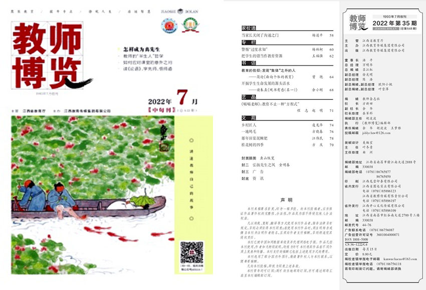 《教師博覽》創(chuàng)辦于1993年,月刊,《教師博覽》作為教育領(lǐng)域權(quán)威期刊,其服務(wù)內(nèi)容豐富、專業(yè)、實用,既有助于教育工作者聚焦最新進展和動態(tài),了解學(xué)科最新成果,也有助于源頭提升教研能力和實踐水平。