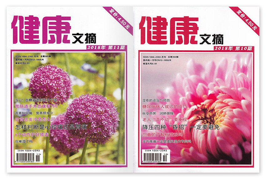 《健康文摘》,創(chuàng)刊于2006年,期望通過自身在傳播領域的資源優(yōu)勢,給我們帶來高品質生活,紙張開本:16開,國內(nèi)刊號:CN:12-1059/R。傳播與人民健康息息相關的醫(yī)藥衛(wèi)生、治病防病、養(yǎng)生保健、科學生活等知識,從而達到增加讀者保健意識,提高讀者保健能力,改變不良生活習慣。