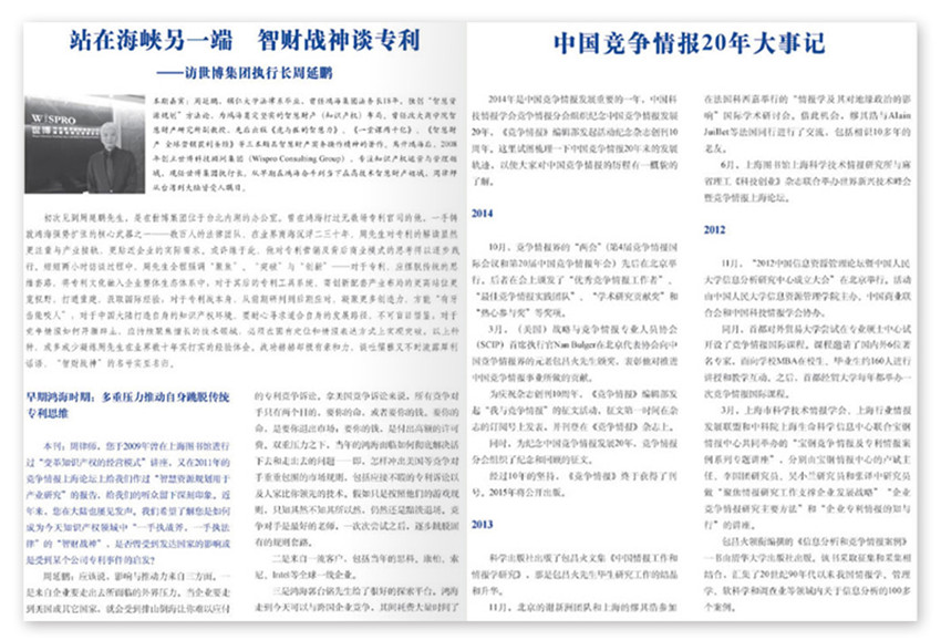 《競爭情報(bào)》創(chuàng)辦于2004年,雙月刊,單期68頁,《競爭情報(bào)》國內(nèi)一本專注競爭情報(bào)的雜志,以“交流研究成果,提高學(xué)術(shù)水平;推廣方法工具,服務(wù)產(chǎn)業(yè)企業(yè);普及情報(bào)思維,提升信息素養(yǎng)”為辦刊宗旨。