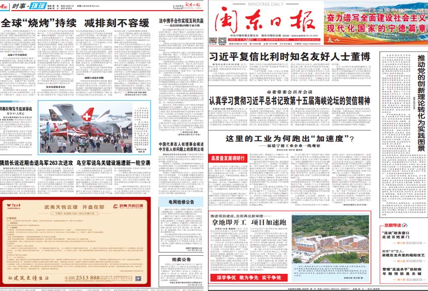 《閩東日?qǐng)?bào)》創(chuàng)辦于1952年,日?qǐng)?bào),《閩東日?qǐng)?bào)》在地方新聞報(bào)道方面,注重深度和資訊價(jià)值。它關(guān)注社會(huì)民生,深入貼近民眾,積極開(kāi)展社會(huì)調(diào)查和報(bào)道,推動(dòng)建設(shè)和諧社會(huì)。同時(shí),它還擁有一支專業(yè)的體育報(bào)道團(tuán)隊(duì),對(duì)國(guó)內(nèi)外的各類體育賽事進(jìn)行全方位的報(bào)道,為廣大體育愛(ài)好者提供權(quán)威、及時(shí)的體育新聞和賽事信息。