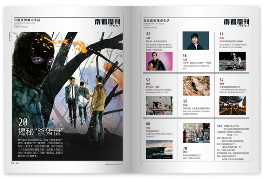 《南都周刊》,創(chuàng)刊于1949年,期望通過自身在傳播領(lǐng)域的資源優(yōu)勢,給我們帶來高品質(zhì)生活,紙張開本:16開,國內(nèi)刊號:CN:44-0121。封面報道的兩大關(guān)注領(lǐng)域是城市進程和公民社會建設(shè)。從新興的中產(chǎn)階層角度出發(fā),聚焦城市化進程中衍生的社會事件、經(jīng)濟趨勢、文化現(xiàn)象、生活潮流。從公民社會建設(shè)入手,倡導(dǎo)自由公正理念,關(guān)注中國民主憲政進程,觀察公民社會的制度生成和權(quán)利維護,記錄時代及個體命運。