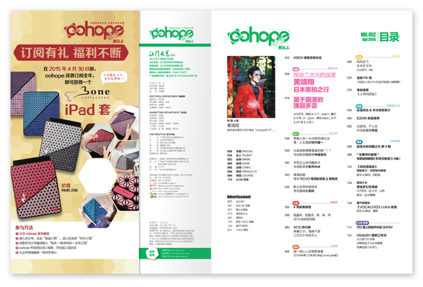 首本針對潮流動漫人和動漫潮流追隨者,并以推廣及發(fā)展民族動漫文化,打造國內(nèi)動漫平臺為目的的動漫潮流讀物,主要欄目:動.播客、包羅漫有、天朝制作、HOTREAD、COS專區(qū)等,精彩的參與與體驗(Experience),以年輕的視覺展現(xiàn)近期,潮的動漫咨詢。