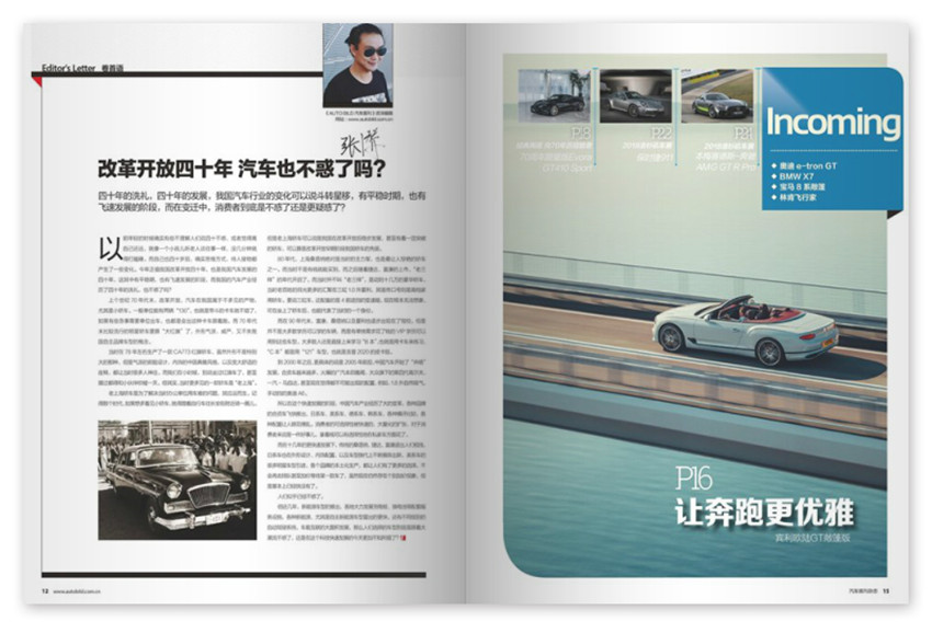 雜志的閱讀人群面多而廣,鮮明的辦刊宗旨和長期穩(wěn)定的高質(zhì)量文章,具有深度影響力的汽車雜志,雜志的獨特風格贏得了廣大讀者喜愛,觀念前衛(wèi)脫俗,文風生動洗煉。獨特的敘述風格,文字力求生動簡潔而饒有興趣,強調(diào)與讀者的交流,具有濃厚的文人氣息和知識分子情調(diào)。