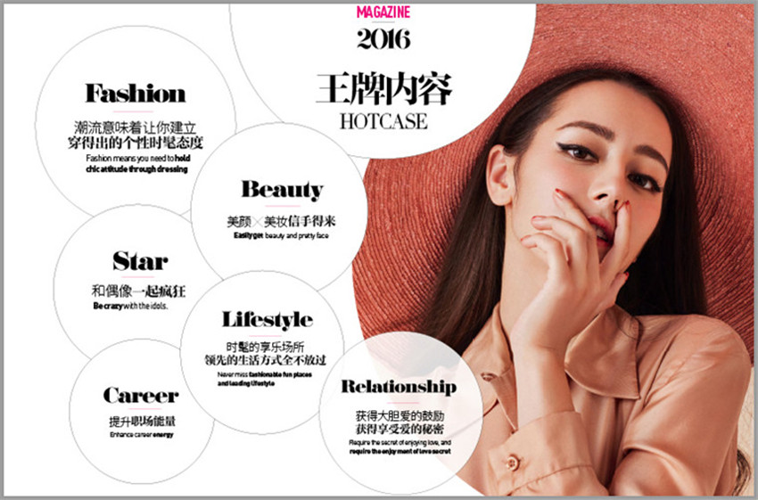 《時(shí)尚·伊人》主要欄目:職業(yè)、生活、時(shí)裝、美容、娛樂等。