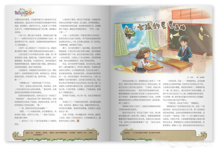本刊用少年兒童喜歡的新奇創(chuàng)意、獨(dú)特造型、奇幻畫面和炫酷風(fēng)情,把時(shí)尚和流行元素帶給孩子;主要欄目:柒染童話、咂吧咂吧酷、水晶翅膀、時(shí)光列車、冰夫老師作文課堂、金牌小作家、鬼才畫秀、草莓莊園、老乖的后花園等。