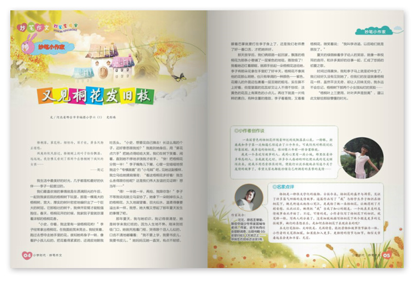 集互動性、趣味性、實用性于一身,以提高學(xué)生閱讀、習(xí)作水平為目的。每期刊登名師專題指導(dǎo)、作文展示。靈動與技巧同步,評點與素材結(jié)合,眾多名師打造系列主題,知名作家進行精彩點評,還新增了微信音頻閱讀的功能,開辟了雜志有聲閱讀的新領(lǐng)域,給小讀者閱讀新體驗。
