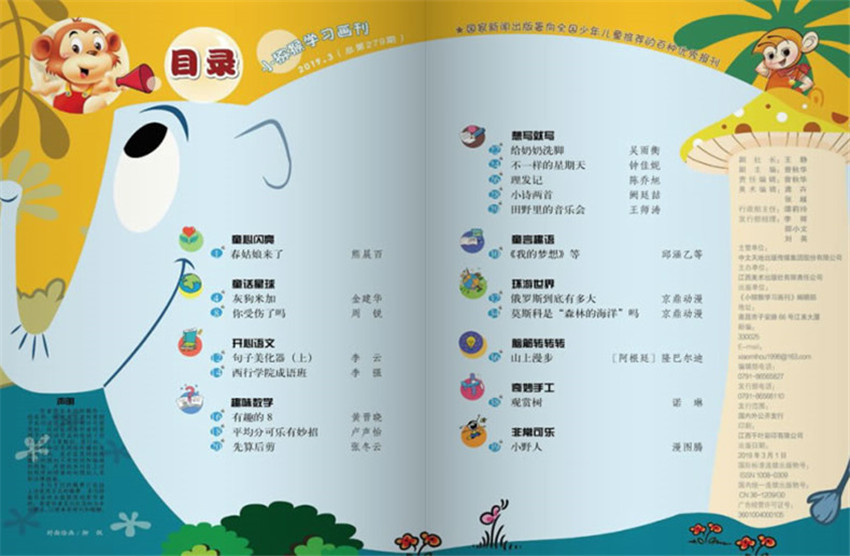 《小獼猴·智力畫刊》主要欄目:專題報道、聰明猴與糊涂猴、IQ大闖關(guān)、一號訓(xùn)練營、007駕到、侏羅紀(jì)、心理透視鏡、故事鋪子、智者無敵、高速大腦、創(chuàng)意DIY。