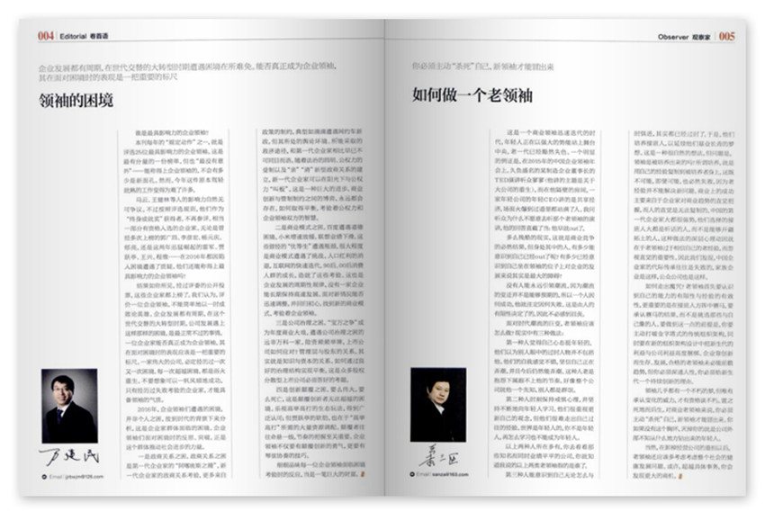 《中國(guó)企業(yè)家》,創(chuàng)刊于1985年,期望通過(guò)自身在傳播領(lǐng)域的資源優(yōu)勢(shì),給我們帶來(lái)高品質(zhì)生活,紙張開本:16開,國(guó)內(nèi)刊號(hào):CN:11-1269/F。領(lǐng)袖的困境,誰(shuí)是具影響力的企業(yè)領(lǐng)袖?本刊每年的“規(guī)定動(dòng)作"之一,就是評(píng)選25位影響力的企業(yè)領(lǐng)袖。這是有分量的一份榜單,但也“沒(méi)有意外”一能稱得上企業(yè)領(lǐng)袖的,不會(huì)有多少是新面孔。然而,今年這件原本駕輕就熟的工作變得為難了許多。