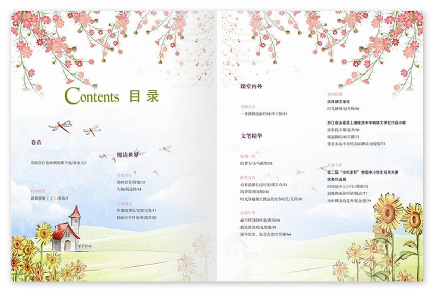 《中國校園文學(xué)·小學(xué)》主要欄目:經(jīng)典再現(xiàn)、佳作有約、成長天空、畫夢工廠、教師在線、主題閱讀等。