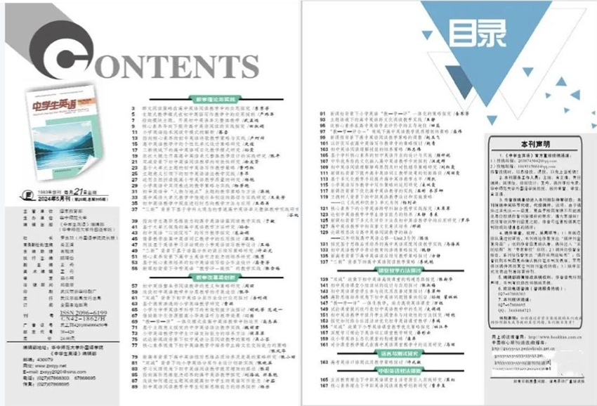 雜志以“指導(dǎo)性、科學(xué)性、實(shí)用性、趣味性”為辦刊方針,內(nèi)容涵蓋閱讀理解、寫作技巧、語法知識(shí)、考試指導(dǎo)、跨文化交際等領(lǐng)域,兼顧學(xué)術(shù)深度與教學(xué)實(shí)用性。其讀者對(duì)象包括初中和高中學(xué)生、英語教師及教研員,既為學(xué)生提供提升英語綜合能力的優(yōu)質(zhì)資源,也為教師搭建教學(xué)經(jīng)驗(yàn)交流與學(xué)術(shù)研究的平臺(tái)。例如,雜志曾刊發(fā)《交際焦慮與英語教學(xué)》《新課標(biāo)下農(nóng)村初中英語詞匯教學(xué)》等研究論文,為一線教學(xué)提供理論支持。