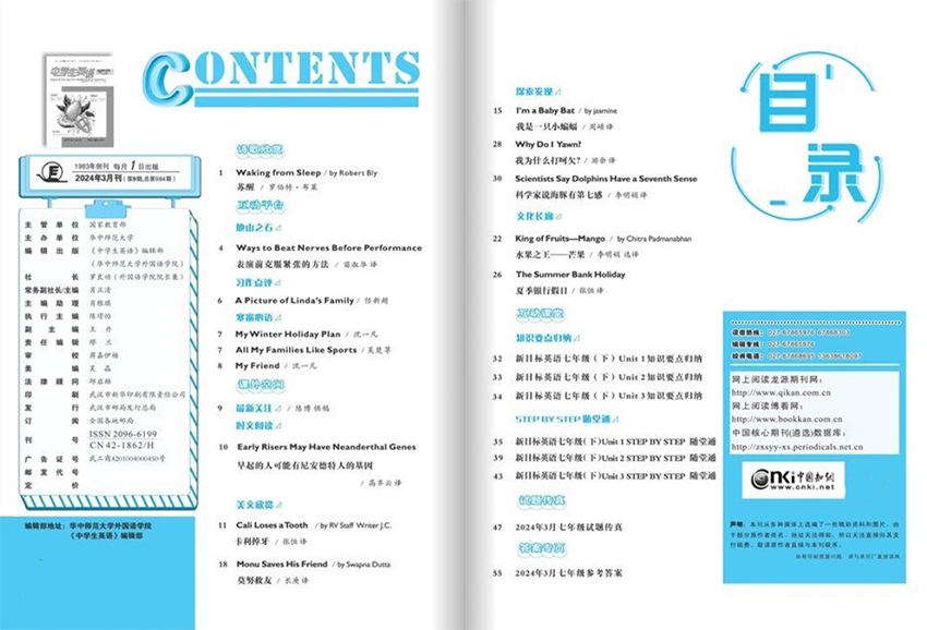 《中學(xué)生英語雜志》是中國大陸面向廣大中學(xué)生發(fā)行的權(quán)威英語學(xué)習(xí)刊物。它緊密圍繞國家中學(xué)英語教學(xué)大綱,以激發(fā)學(xué)習(xí)興趣、提升綜合語言能力為核心宗旨。雜志內(nèi)容涵蓋知識(shí)性、趣味性與實(shí)用性,旨在為學(xué)生們打造一個(gè)超越課堂的英語學(xué)習(xí)與閱讀平臺(tái),是中學(xué)生課堂英語學(xué)習(xí)的有益補(bǔ)充和延伸。