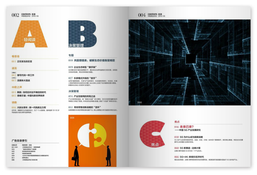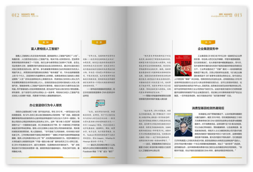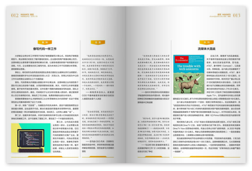 《中歐商業(yè)評論》主要欄目:新知、管理時評、理念、卷首語、封面、案例等。