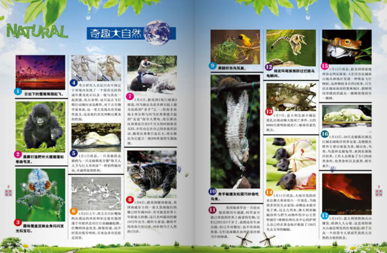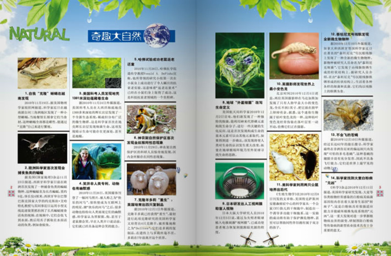《南腔北調(diào)·自然密碼》作為當下中國符合青少年閱讀習慣的科普刊物,每期精選一個選題,為讀者介紹相關的自然奧秘;并以圖片的形式為讀者展示奇特的地理景觀及動植物的趣味習性,讓青少年更好、更便捷的了解自然,熱愛自然。