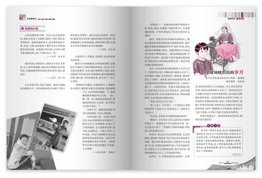 《作文通訊》,創(chuàng)刊于1979年,期望通過自身在傳播領(lǐng)域的資源優(yōu)勢,給我們帶來高品質(zhì)生活,紙張開本:16開,國內(nèi)刊號:CN:12-1037/G4。封面更是“畫中話”,一幅“仁者見仁,智者見智”的漫畫,除了能吸引小讀者的閱讀興趣,更能激發(fā)他們的思考。因此封面美,美在設(shè)計(jì)上,不僅有形式美,還有思想美。
